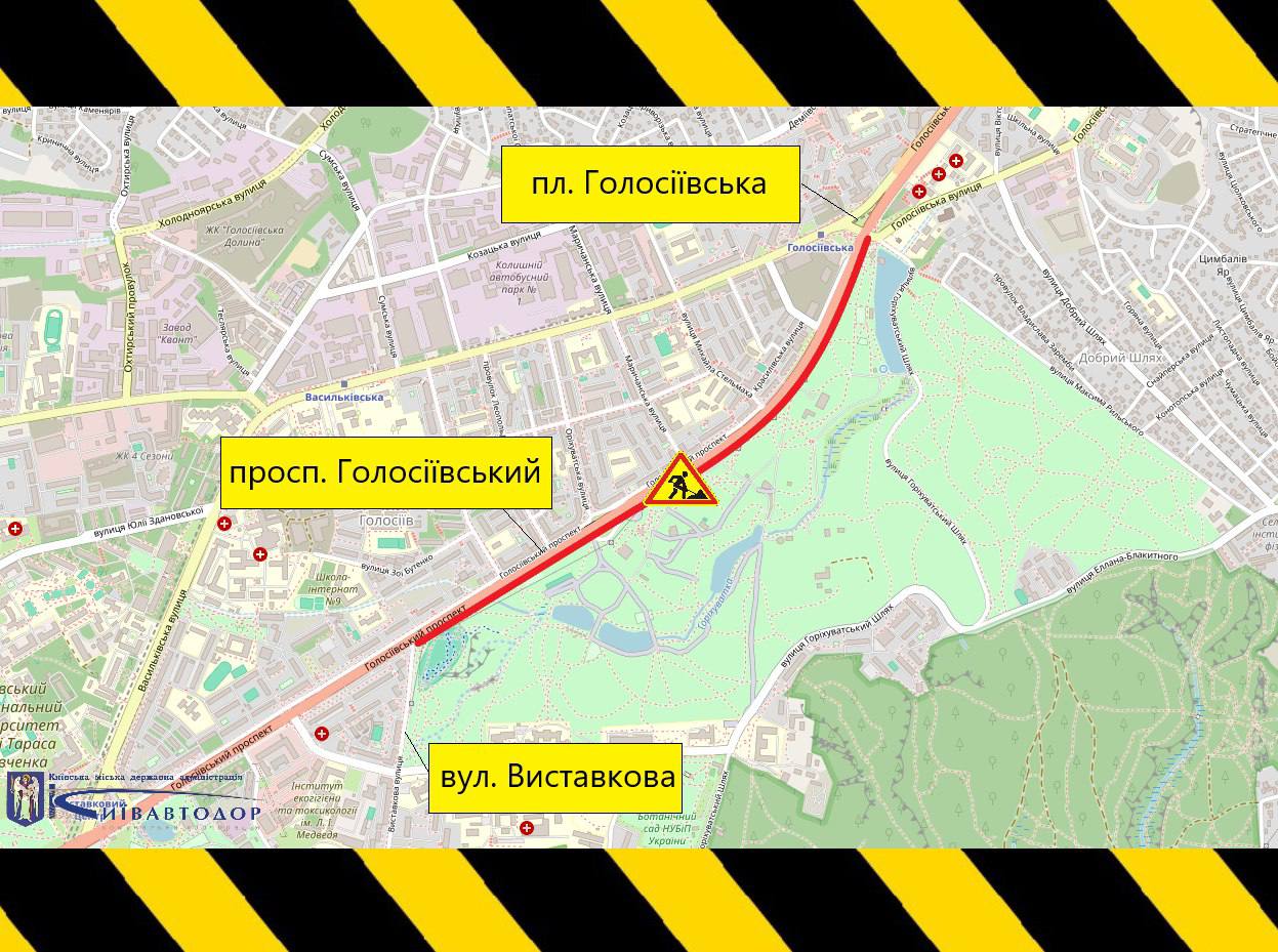 В Киеве до 30 ноября ограничат движение транспорта на участке Голосеевского проспекта