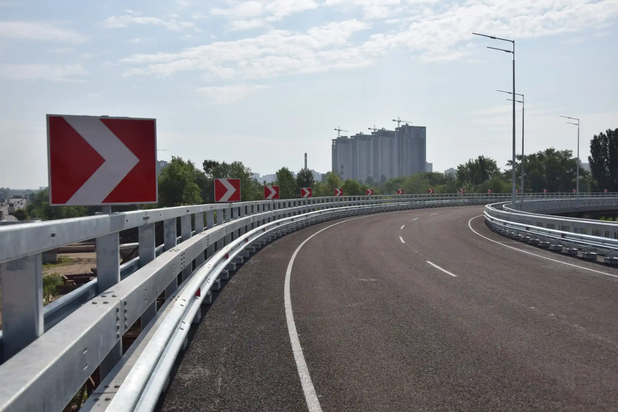 Сегодня, 6 июля в Киеве открыто движение по двум недавно построенным съездам на Дарницком мосту. Теперь автомобилисты смогут без проблем съезжать в сторону моста Патона и Осокорков. Об этом сообщил министр развития громад, территорий и инфраструктуры Александр Кубраков. Строительство моста началось более 10 лет назад. В 2021 году оно было перезапущено, а в марте-апреле прошлого года приостановлено из-за полномасштабного российского вторжения, однако уже в мае снова возобновлено в режиме 24/7.