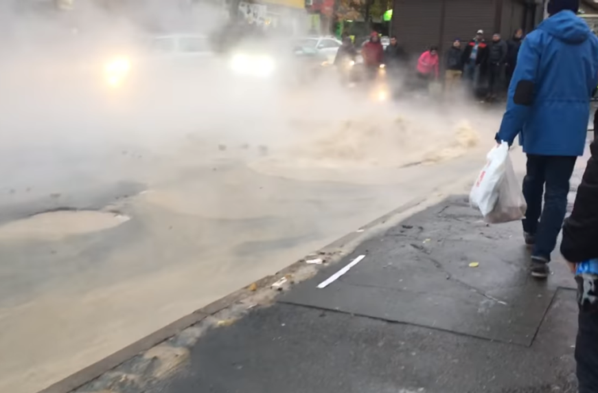 Из-за прорыва движение транспорта оказалось затрудненным, а пешеходы не могли перейти дорогу. Уровень воды на дороге достиг щиколоток. Сразу после прорыва коммунальные службы взялись откачивать воду из ямы.