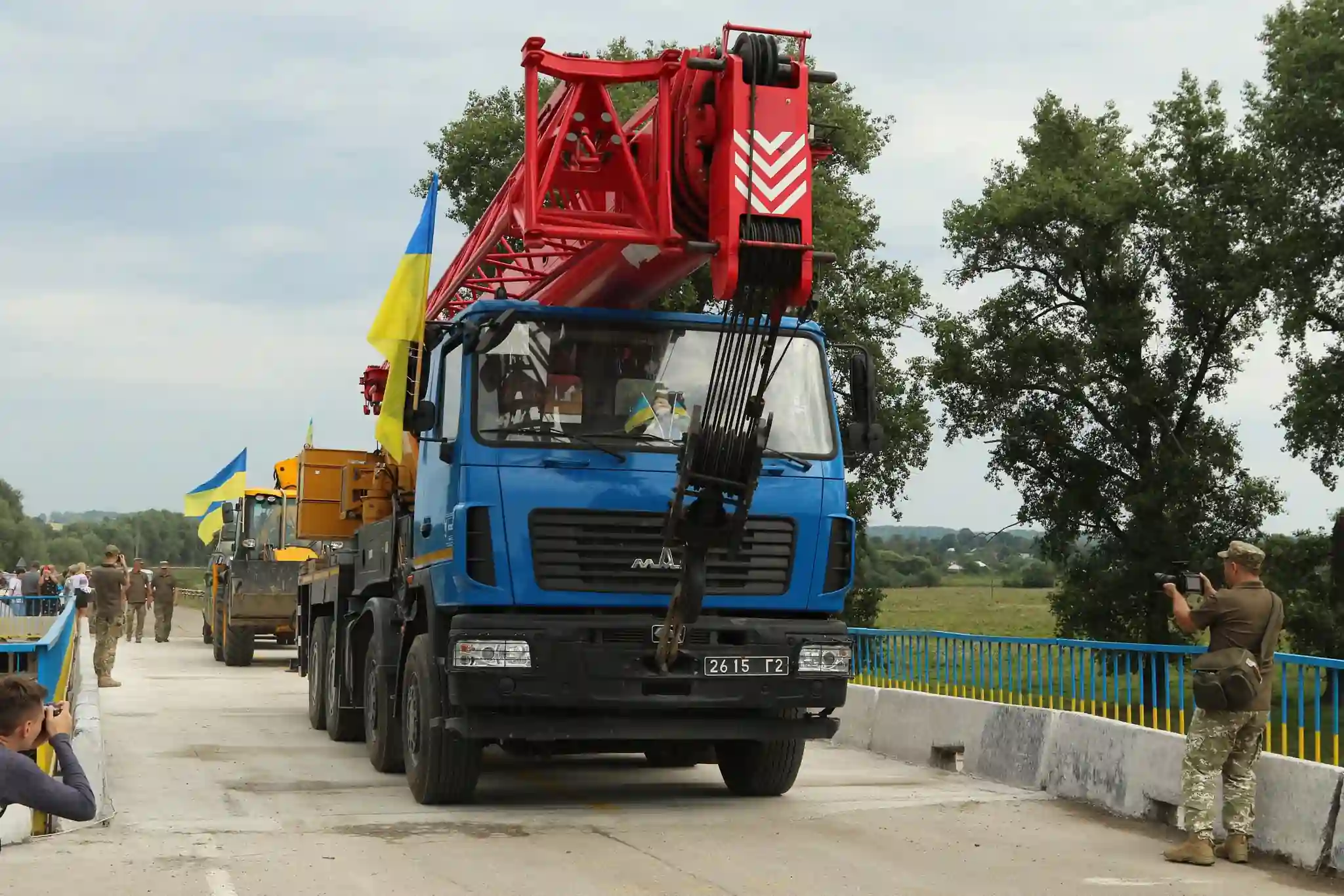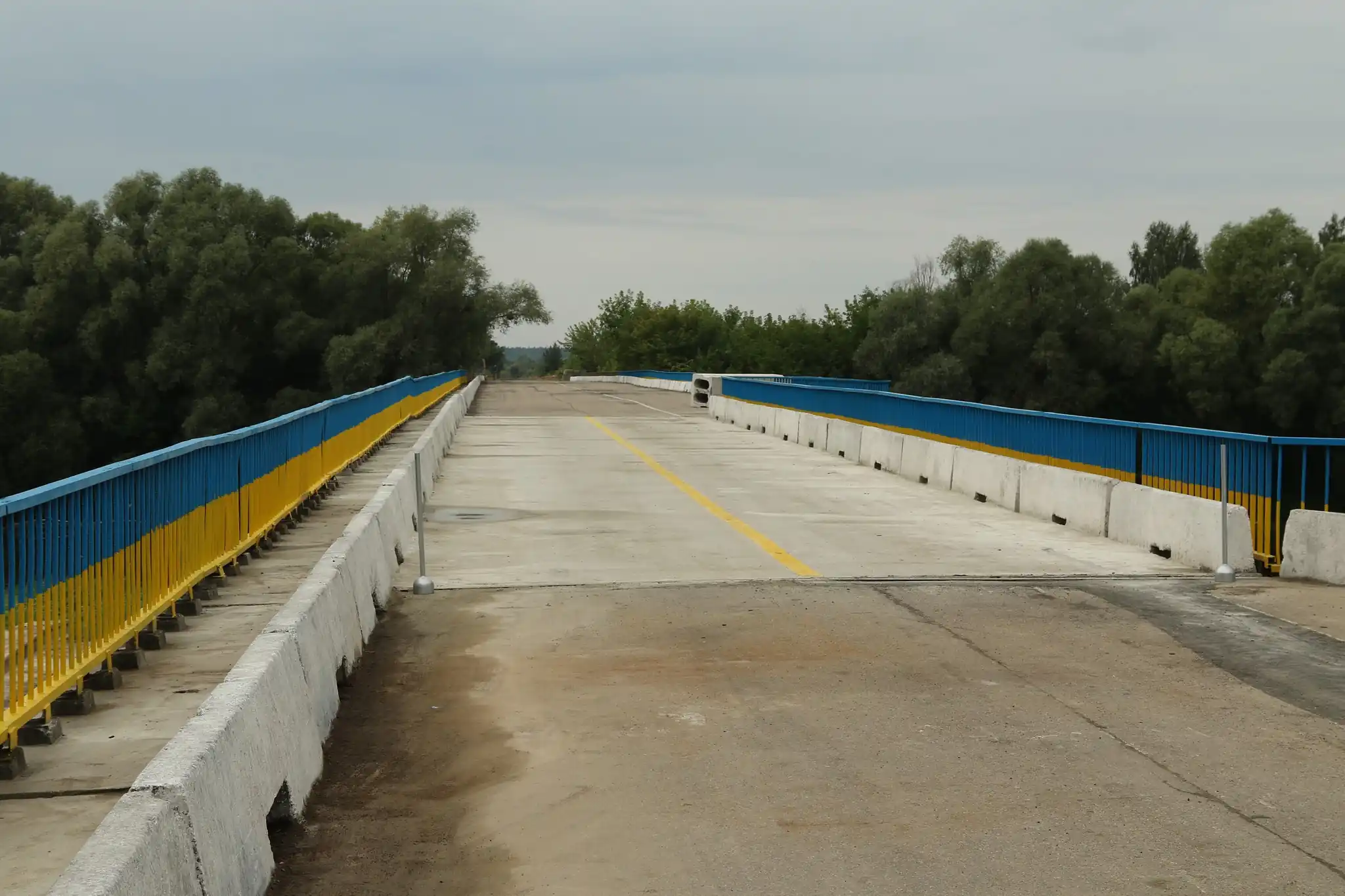 Автомобильное движение организовано по одной полосе в каждую сторону. Этот восстановленный мост – первый из 15, которые были разрушены в ходе российских обстрелов в Сумской области. Сразу после официального открытия мост испытали на прочность, прогнав по нему большегрузный автокран и экскаваторы-погрузчики.