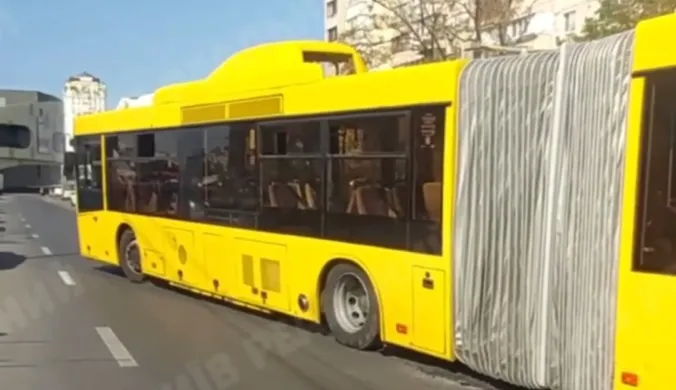 В Киеве автобус попал в яму и остался без подвески (видео)
