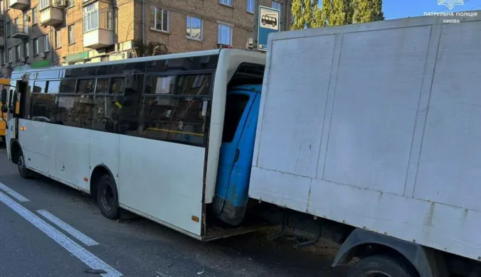 В Киеве грузовик влетел в маршрутный автобус: много пострадавших (видео)