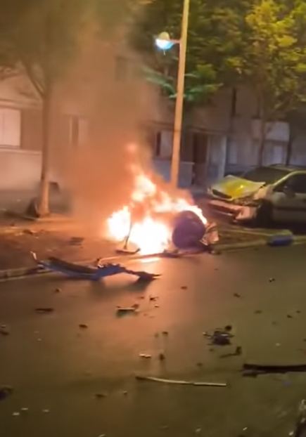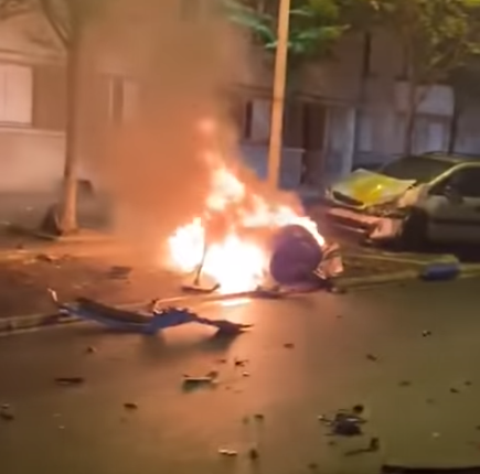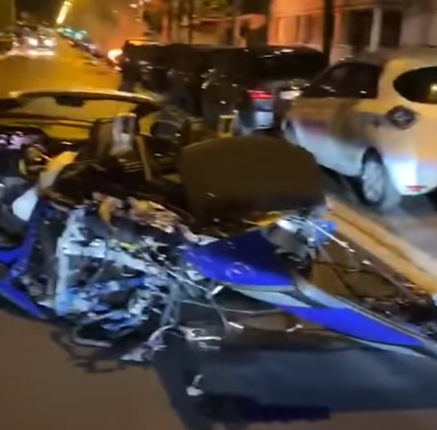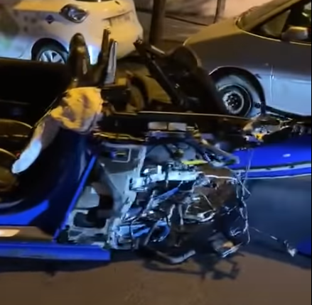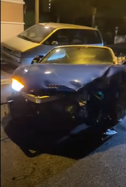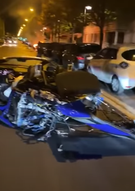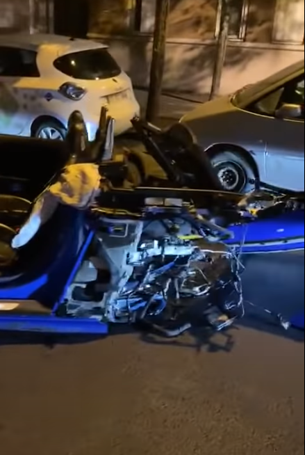 Хвостовая часть суперкара оторвалась задолго до того, как он перестал врезаться в другие транспортные средства. Элементы от R8 Spyder разлетелись на сотню метров. Ими было буквально услано все дорожное полотно. Даже мощный двигатель вылетел из разрушенного авто, после чего загорелся.