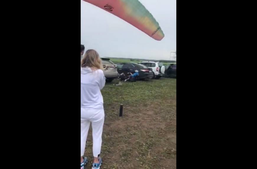 Некий парашютист выбрал не совсем удачное место для посадки, а именно – на парковке авто. Судя по всему, он просто не рассчитал расстояние, хотя не исключено, что изначально был задуман такой себе трюк – сесть, так сказать, эффектно, в нескольких сантиметрах от машин. Так или иначе, но его действия обернулись очень неприятными последствиями – мужчина врезался в свеженький кроссовер Лексус, нанеся ему существенные повреждения. Сам же парашютист не пострадал.