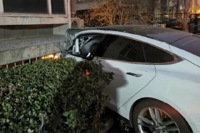 Tesla Model S перестала слушаться, разогналась и влетела в дом – водитель выскочил на ходу
