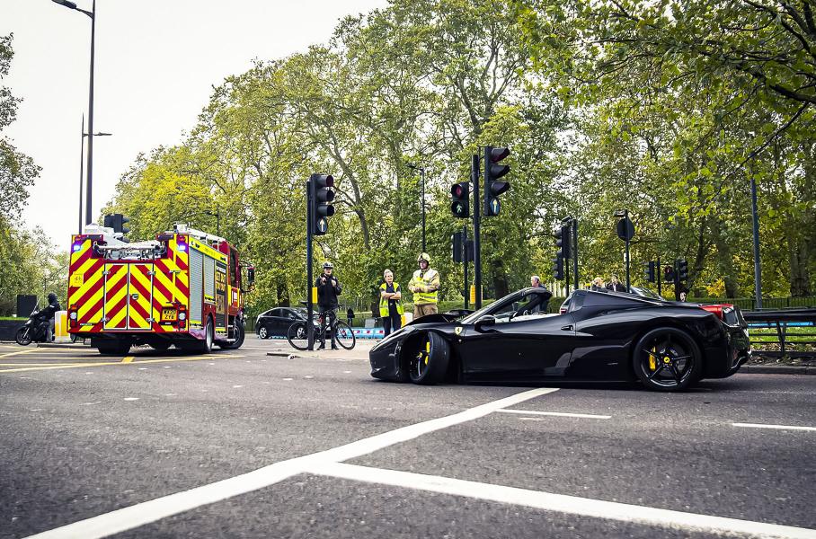 Ferrari 458 Spider и 812 Superfast, а также BMW M6 Gran Coupe не поделили дорогу, в результате чего все автомобили получили разные повреждения. Британская полиция продолжает выяснять обстоятельства случившегося.