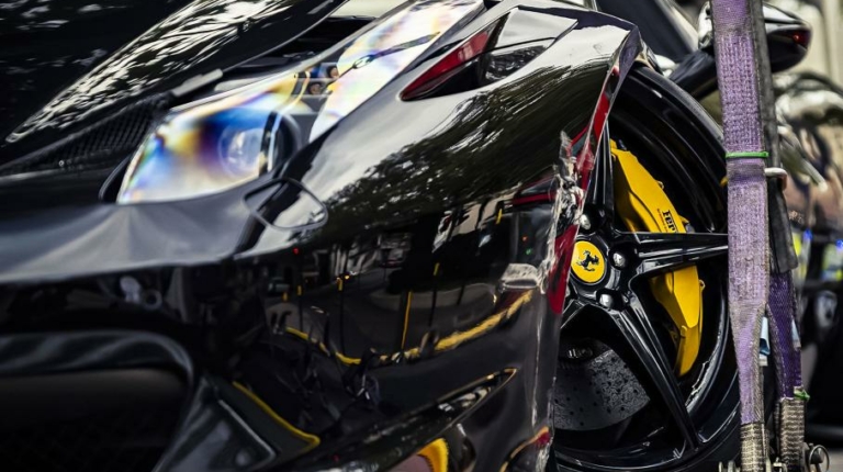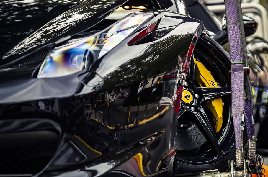 У Феррари 812 ситуация немного лучше. Автомобиль получил повреждения заднего бампера, левого крыла и частично выпускной системы. Восстановление обойдется в кругленькую сумму, что обусловлено использованием углепластика.