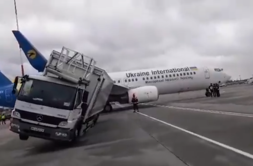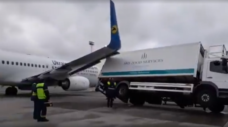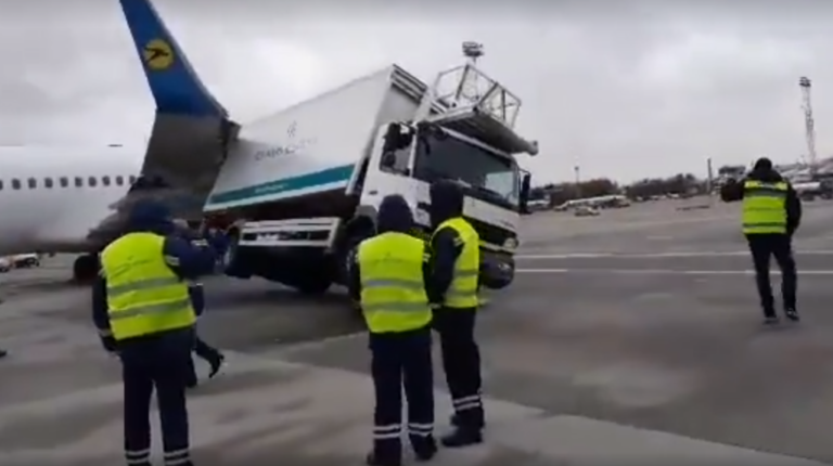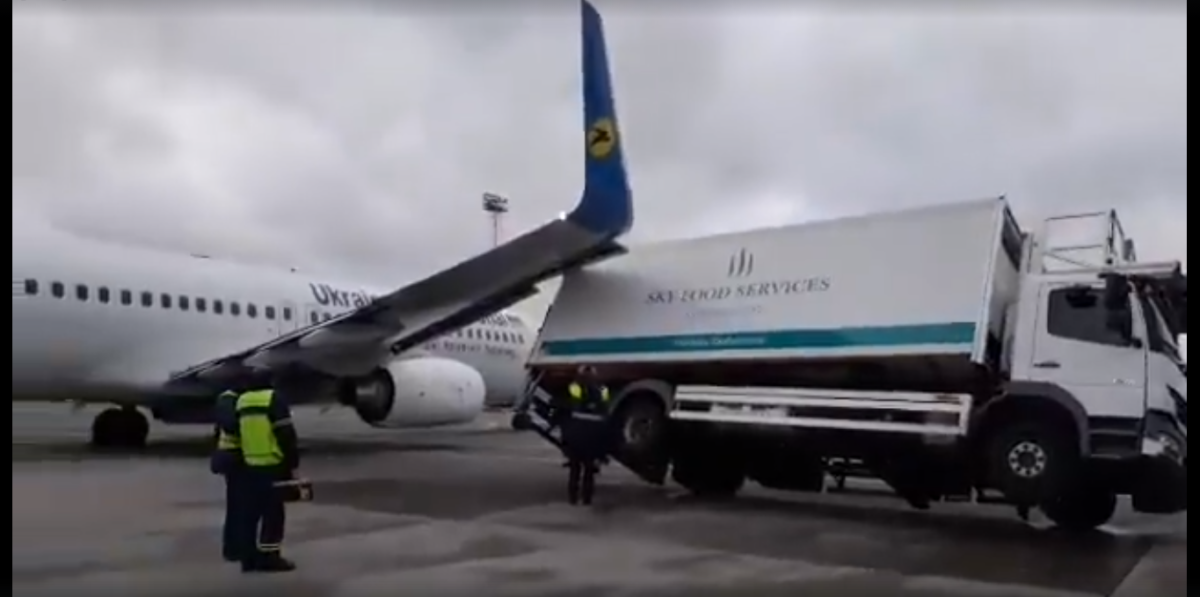 В Сети опубликовали видео ДТП грузовика и самолета в Борисполе