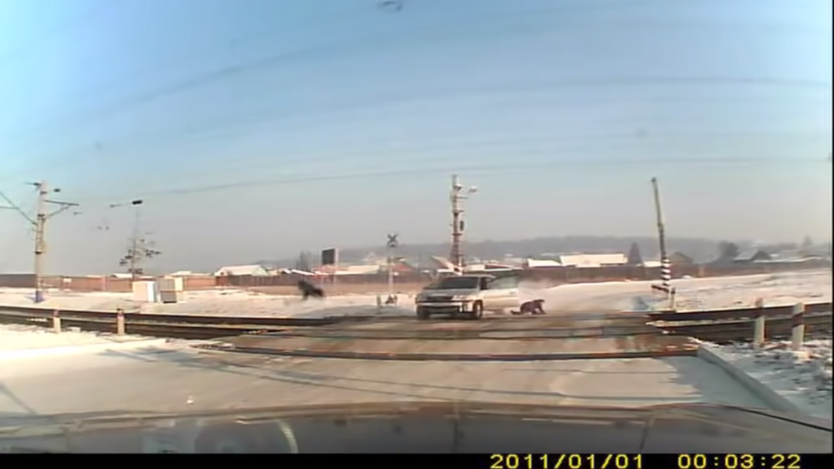 Видеорегистратор заснял впечатляющий случай на ж/д переезде (видео)