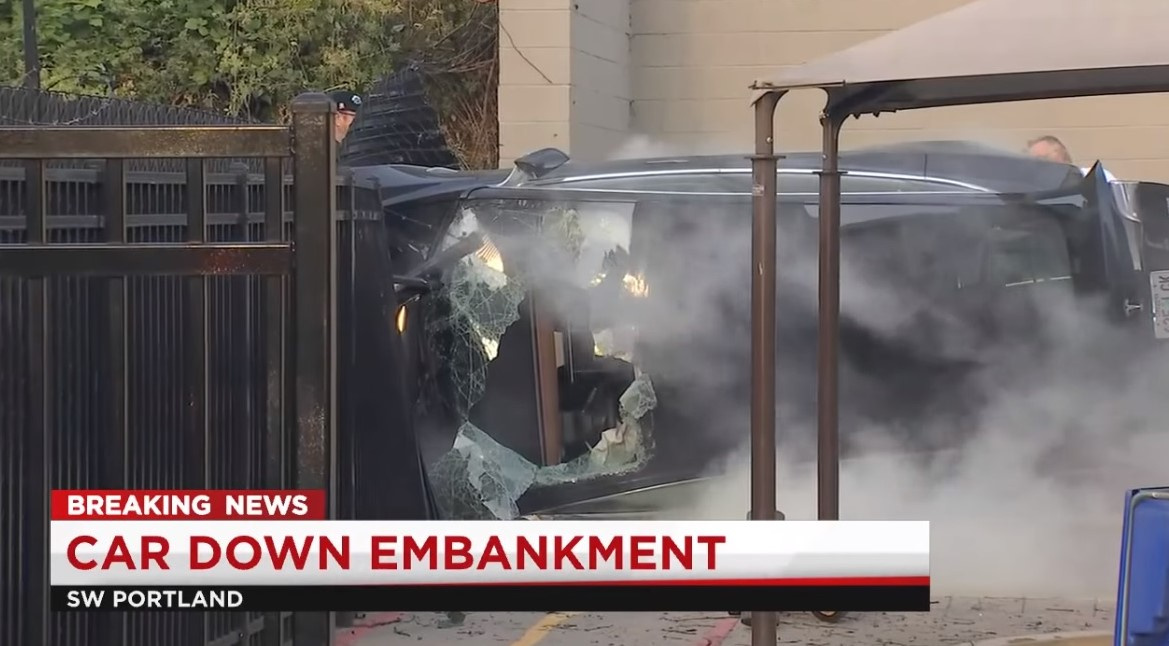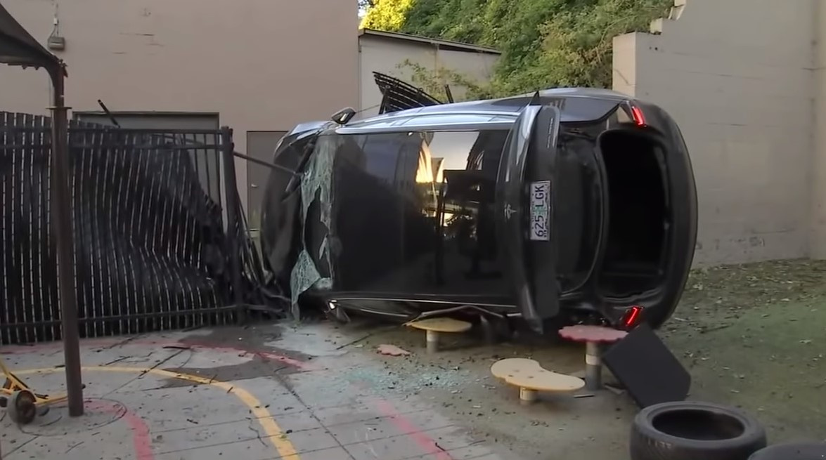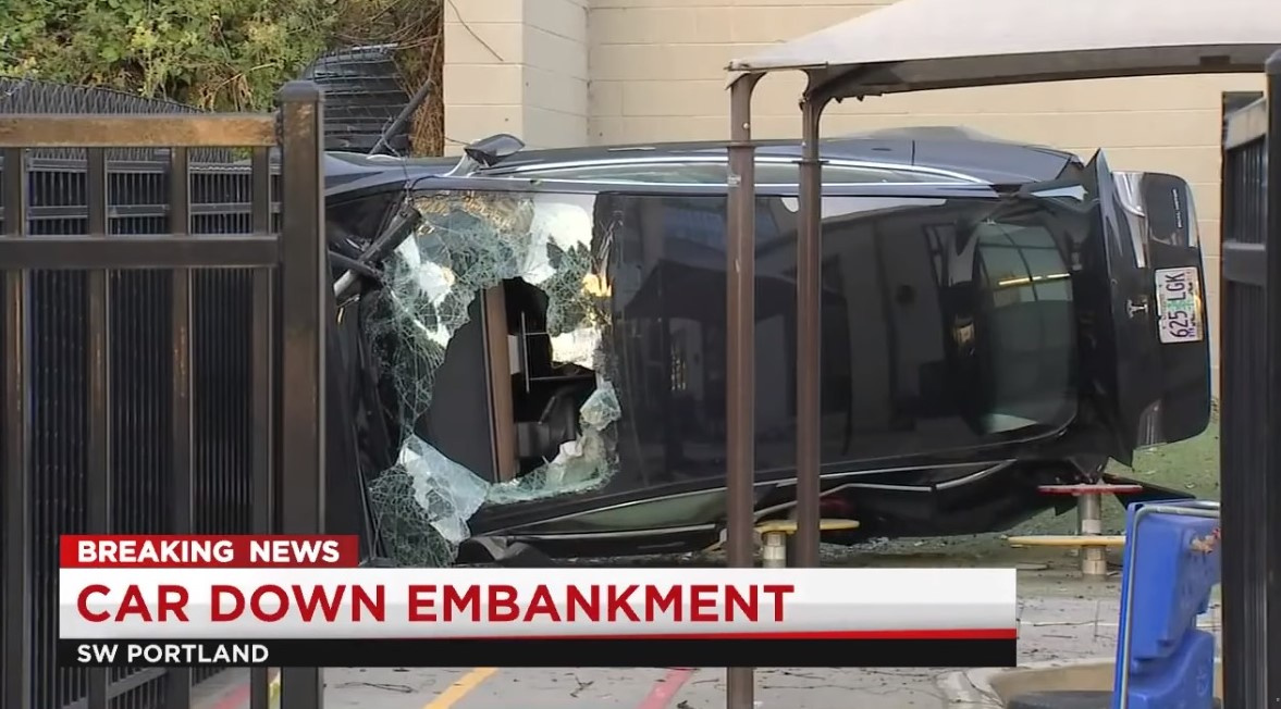 Даже удивительно, что в этом необычном ДТП никто не пострадал. В Портленде, штат Орегон (США) электромобиль Tesla Model 3 упал с выстоты более 12 м прямо на детскую площадку. Водитель не получил серьезных травм, очевидцы происшествия помогли ему выбраться из автомобиля.