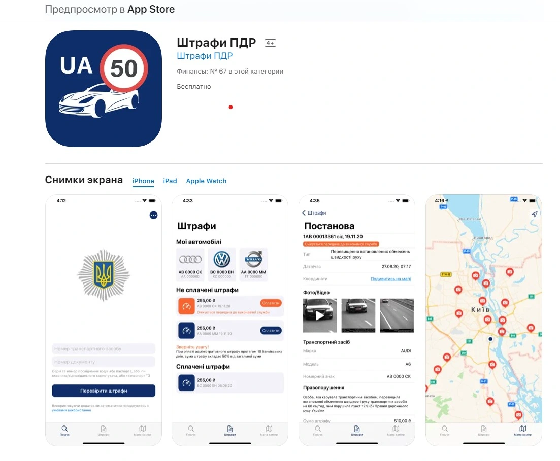 Что касается приложения «Штрафы ПДД», то теперь оно доступно не только для Android-устройств и Apple Watch, а и для Apple iOS. Главной его особенностью является то, что автовладелец может настроить оповещения, которые будут сигнализировать о появлении нового постановления о нарушении. Также в сервисе доступна интерактивная карта расположения камер системы автофиксации нарушений ПДД.