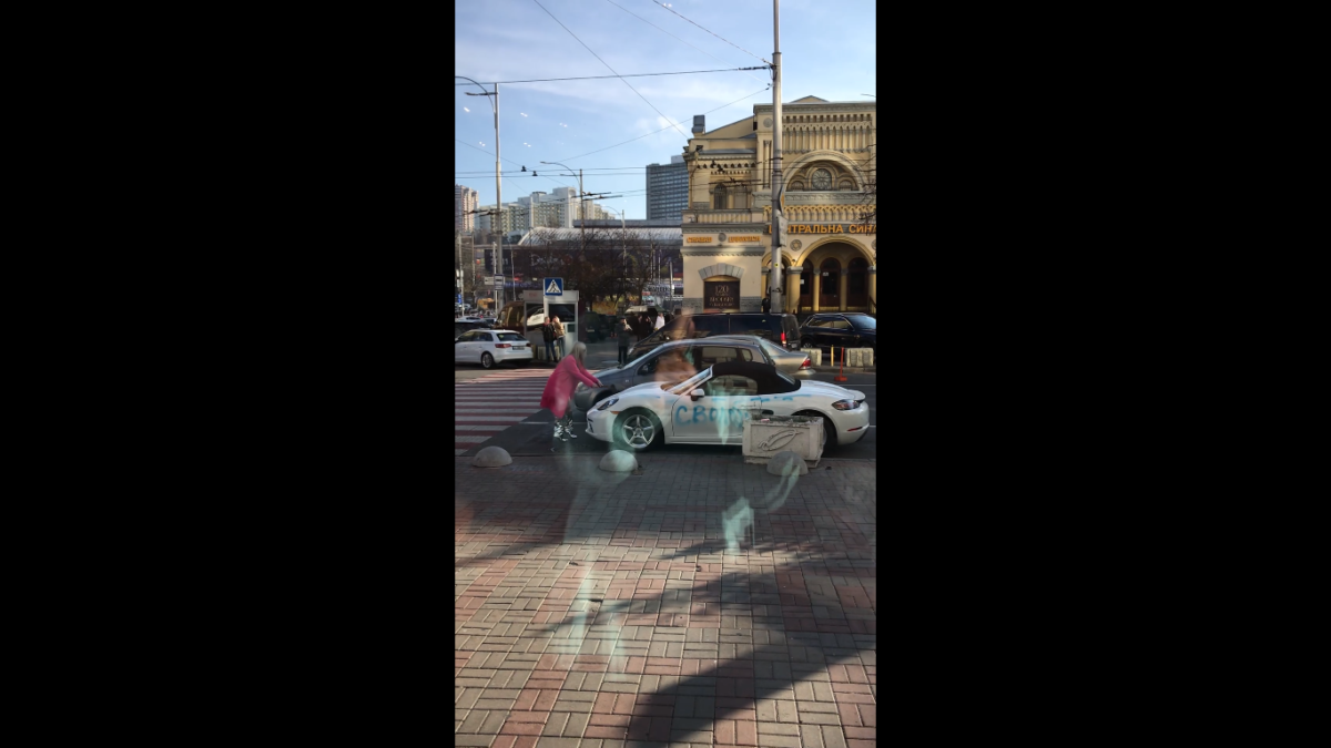 В центре столицы девушка разукрасила и разбила топором Porsche (видео)