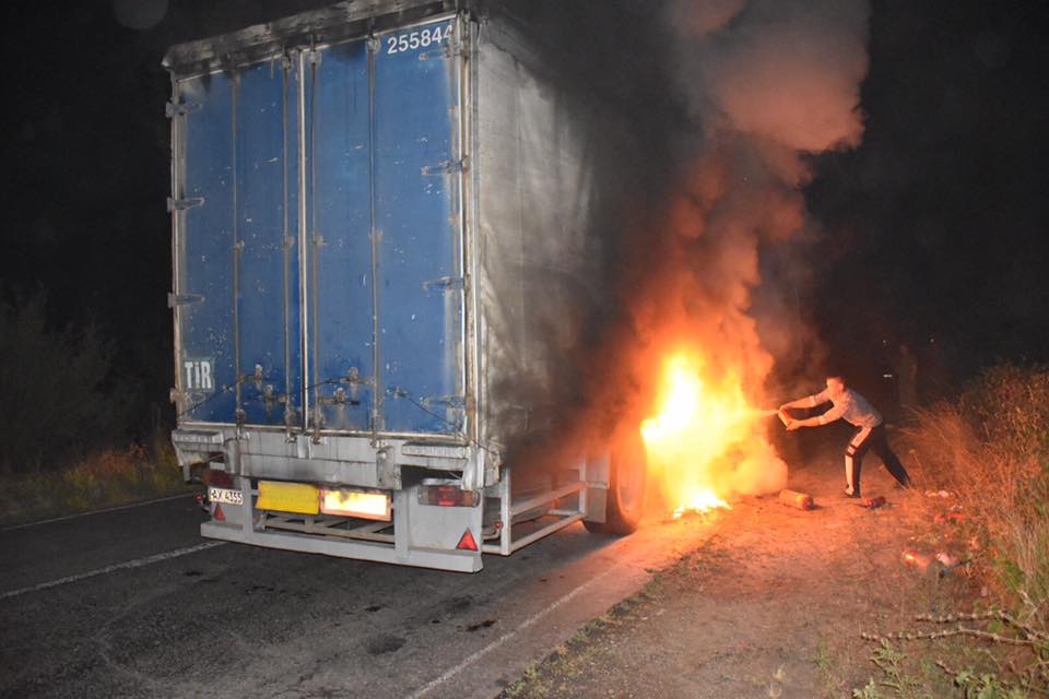 Ночью 20 августа, на трассе возле села Чернявка Каховского района Херсонской области загоревшую фуру тушили интересным образом. Возгорание произошло, по всей видимости, по причине неосторожного обращения с огнем на стоянке. Надо отдать должное водителям проезжающих мимо автомобилей, которые оперативно пришли на помощь. Однако огнетушителями огонь было не загасить.