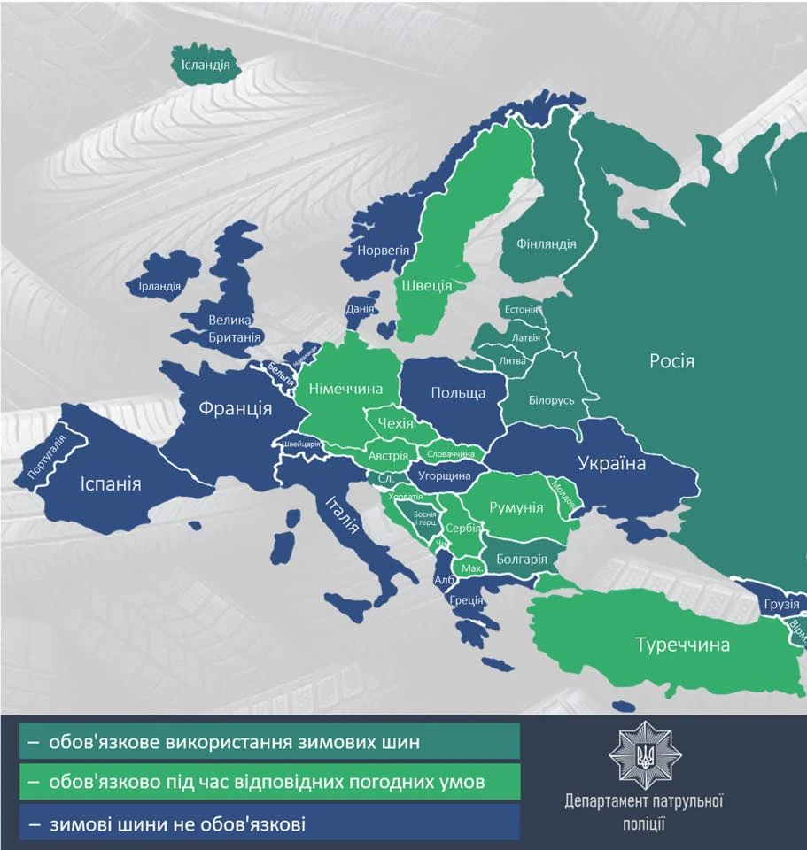 По словам первого заместителя начальника Департамента патрульной полиции Алексея Белошицкого, Украина входит в число тех стран, в которых зимние шины не являются обязательными. На законодательном уровне прописаны только требования к их качеству. Однако не стоит забывать, что в нашей стране зимы куда суровее, чем, например, в той же Италии или Франции. В соседней Беларуси за отсутствие сезонных шин предусмотрен штраф. Даже в Турции, где климат гораздо мягче, нужно менять резину в случае низких температур.
