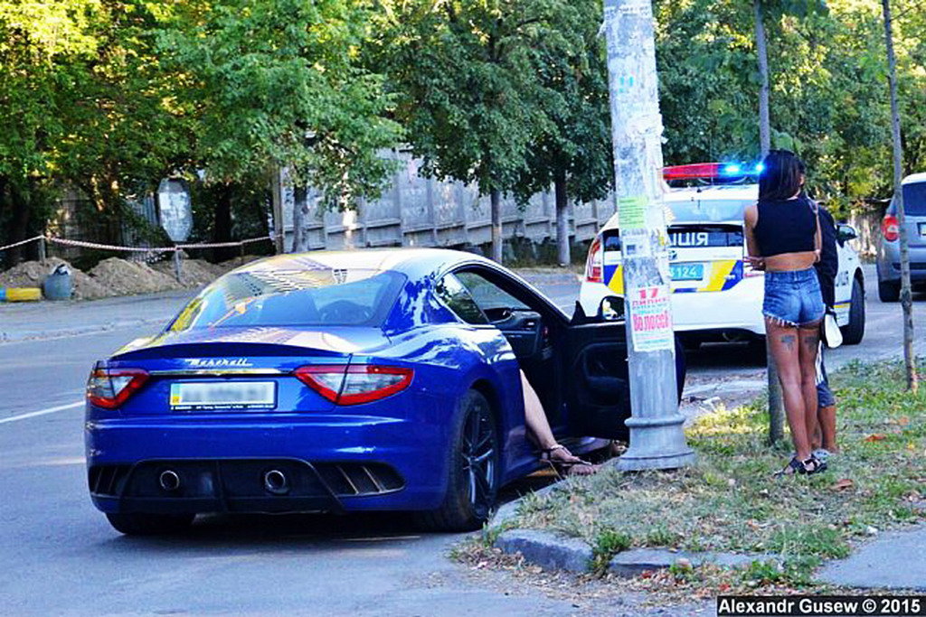 В Киеве два патруля полицейских перехватили элитный спорткар Maserati GranTurismo, который на высокой скорости ехал по ул. Гарматной со стороны просп. Победы. Об этом на своей странице в Facebook сообщил фотограф Александр Гусев и опубликовал соответствующие снимки.