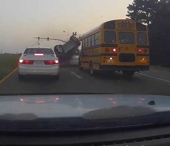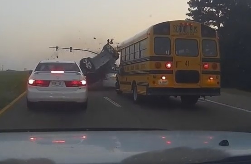 Стоит отметить, что виновник ДТП также задел своим автомобилем школьный автобус, а в США очень строго рассматривают любые посягательства на такой вид транспорта из-за соображений безопасности детей. Тем не менее, водителя автобуса доставили в больницу. Как и мать со своим ребенком из белого седана, стоящего перед автобусом. Этот автомобиль оказался прямо на пути Camaro.