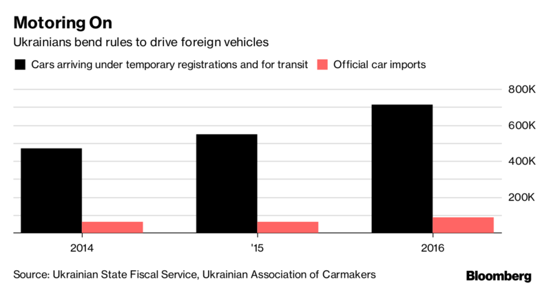 В публикации Bloomberg указывается, что на улицах украинских городов с каждым годом все больше авто на иностранных номерах и это не туристы из других стран. Речь идет о транспортных средствах в режиме временного ввоза и транзита.