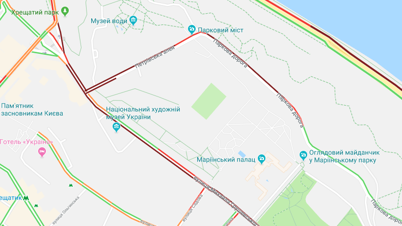 Как сообщает Информатор, в среду, 15 мая, в центральной части Киева обладатели евроблях организовали демонстрацию (продлится она 2 дня), цель которой – получить еще “немного времени” на возможность растаможки. Согласно данным Google Maps, по состоянию на 10:00 на улице Грушевского, а также Парковой дороге образовалась пробка.