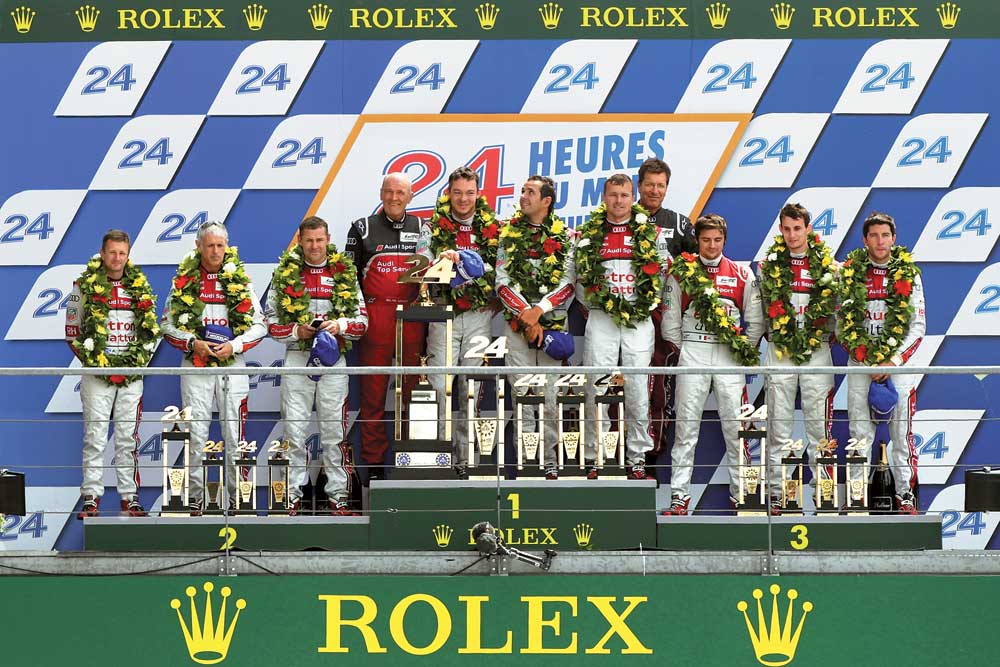 Что же до пилотов Audi, оставшихся без основных соперников и предоставленных самим себе, то для них последующие часы гонки не стали легкой прогулкой. Каждый экипаж «колец» столкнулся с теми или иными техническими неполадками, а в авариях разной степени тяжести побывали и Марсель Фасслер, и Марк Жене, и Алан МакНиш. И все же, несмотря на пережитые неприятности, весь квартет Вольфганга Ульриха добрался до финиша, полностью оккупировав подиум.