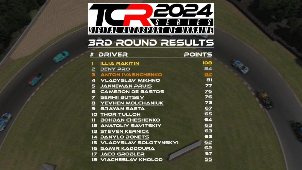 Міжнародної Серії змагань на автомобілях класу TCR під назвою DIGITAL AUTOSPORT OF UKRAINE: TCR Series-2024 (DAU TCR Series) на симуляторі iRacing.