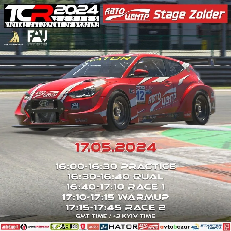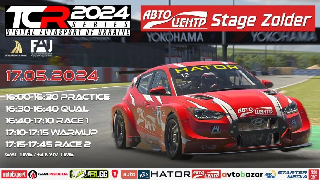 17 травня 2024 року о 19-30 Комісія Цифрового Автоспорту запрошує на ЧЕТВЕРТИЙ етап Autocentre Stage Zolder