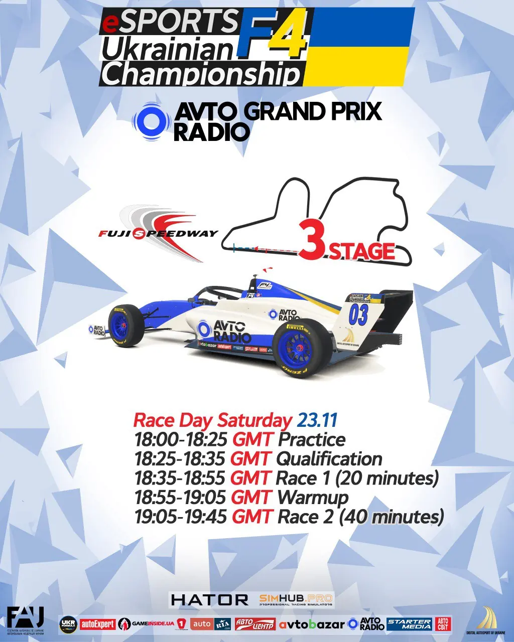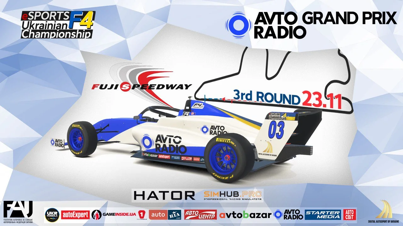 Комісія Цифрового Автоспорту запрошує на третій етап AVTORADIO Grand Prix офіційного ЧЕМПІОНАТУ УКРАІНИ З ЦИФРОВИХ ГОНОК та Відкритого Міжнародного Чемпіонату «ESPORTS UKRAINIAN F4 CHAMPIONSHIP».