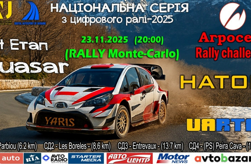 Запрошуємо на четвертий етап Національної серії АГРОСЕМ Rally Challenge — Quasar Rally, який пройде в неділю, 23 листопада 2025 року о 20:00 за Києвом.