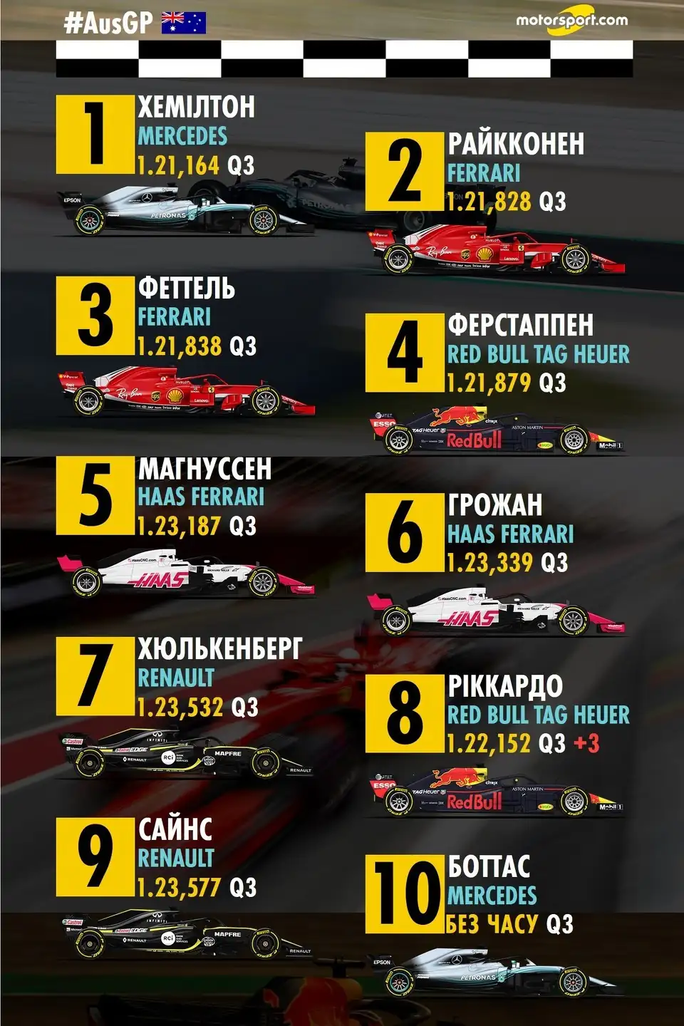 Многие ожидали, что Haas на Гран При Австралии будет фаворитом в средней группе. И хотя в квалификации она вела напряженную борьбу с Renault и McLaren, лучшими здесь стали именно Магнуссен и Ромен Грожан. Пилоты Haas будут стартовать с третьего ряда, учитывая штраф Риккардо и неудачу Боттас. То есть, в теории можно рассчитывать на высокий результат.