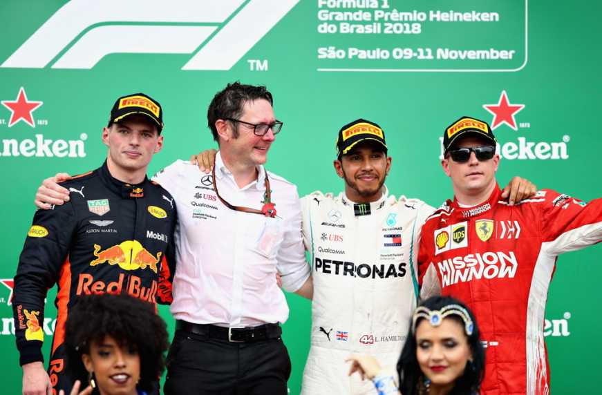 Борьбу за третье место на Гран При Бразилии выиграл Райкконен, который в конце дистанции сдерживал атаки Риккардо. В свою очередь Феттель и Боттас вынуждены были еще раз останавливаться в боксах, поскольку совсем не имели нужного темпа. Валттери финишировал впереди немца, что окончательно закрепило позицию Mercedes в чемпионате – немецкая команда выиграла Кубок конструкторов, поскольку уже недостижима.