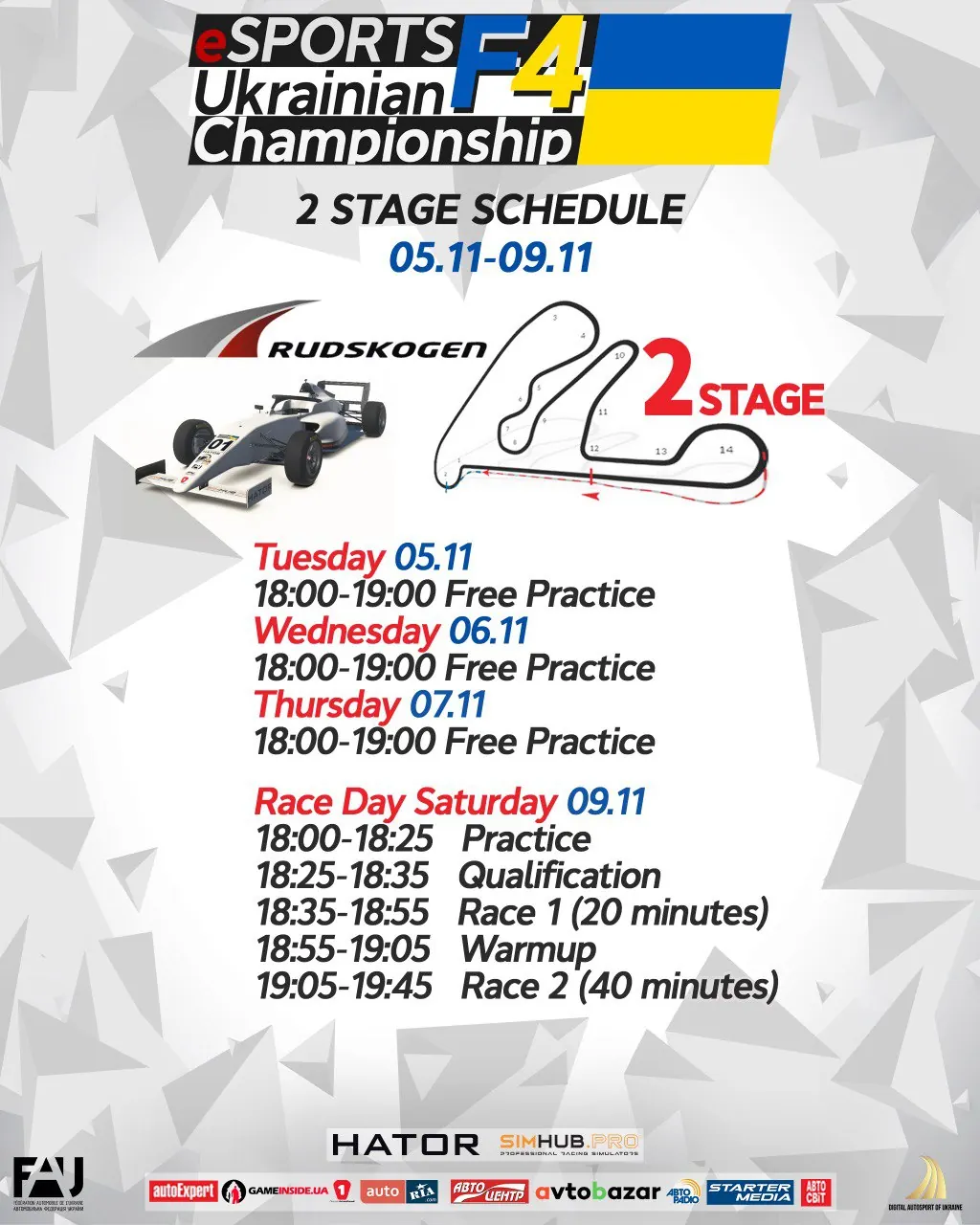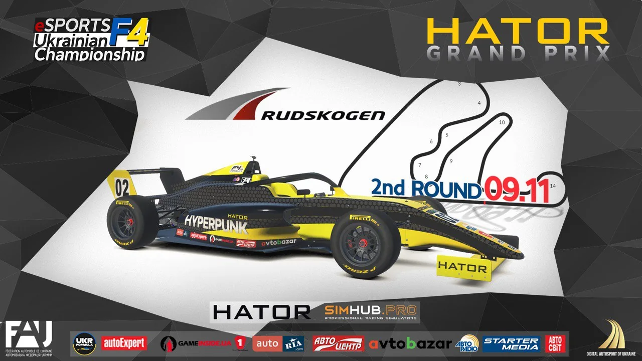 Комісія Цифрового Автоспорту запрошує на другий етап «HATOR Grand Prix» офіційного ЧЕМПІОНАТУ УКРАІНИ З ЦИФРОВИХ ГОНОК та Відкритого Міжнародного Чемпіонату «ESPORTS UKRAINIAN F4 CHAMPIONSHIP».