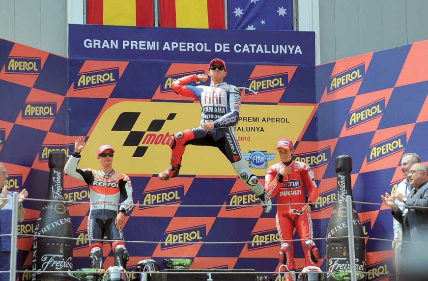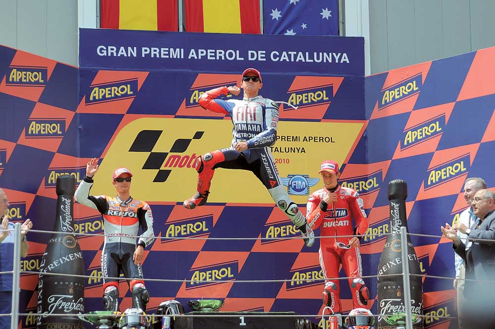 Полное дежавю могли испытать болельщики Moto GP при виде подиума Каталонской гонки. Только неделю назад на Гран-при Нидерландов на нем в том же порядке стояли те же пилоты. Первым снова был гонщик Yamaha испанец Хорхе Лоренцо. Это его пятая в сезоне и уже третья подряд победа. «В начале гонки было трудно. Меня прессинговал Андреа Довизиозо, переднее колесо моего байка постоянно соскальзывало, да и жарко было очень. Но после падения Андреа я смог спокойно финишировать», – резюмировал лидер чемпионата. На второй и третьей позициях вновь оказались испанец Дани Педроза из Honda и пилот Ducati австралиец Кейси Стоунер. Обладатель украинской лицензии Владимир Иванов, выступающий в классе Moto2, отметился лучшим для себя финишем в сезоне, став 18-м. Лидер класса испанец Тони Элиас на родной земле был лишь пятым.