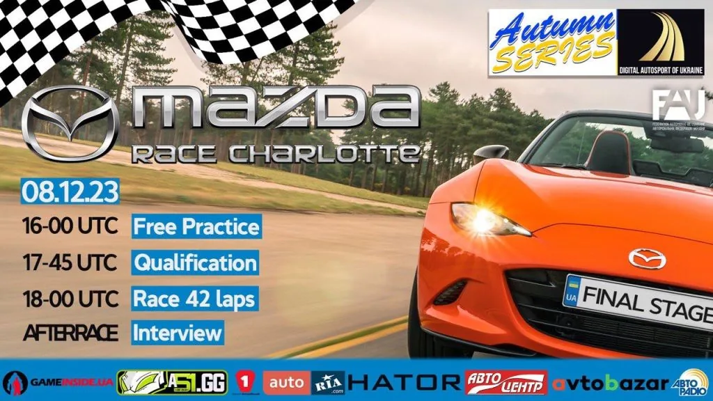 Одже, все вирішиться на 7 етапі «MAZDA Final Race Charlotte» Розклад гоночного дня 8 грудня 2023: