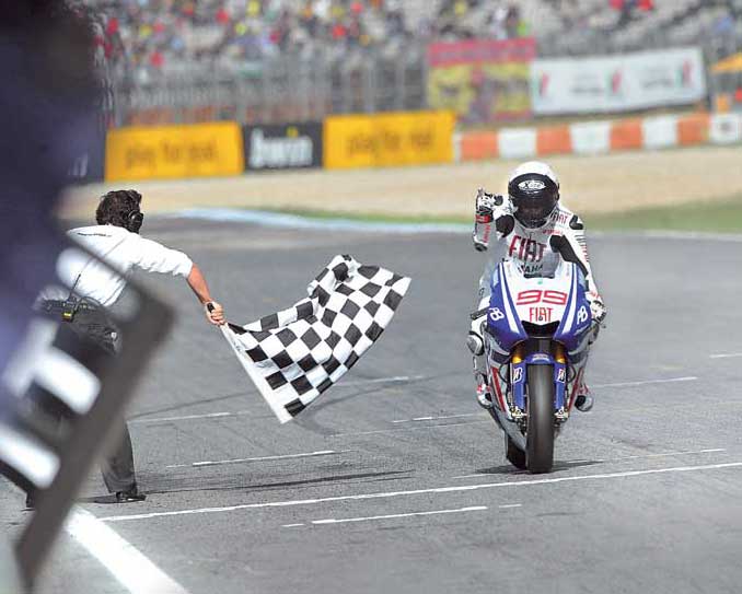 После шести беспобедных финишей Хорхе Лоренцо наконец пришел первым, хотя мог оказаться позади своего партнера по команде Yamaha Валентино Росси.