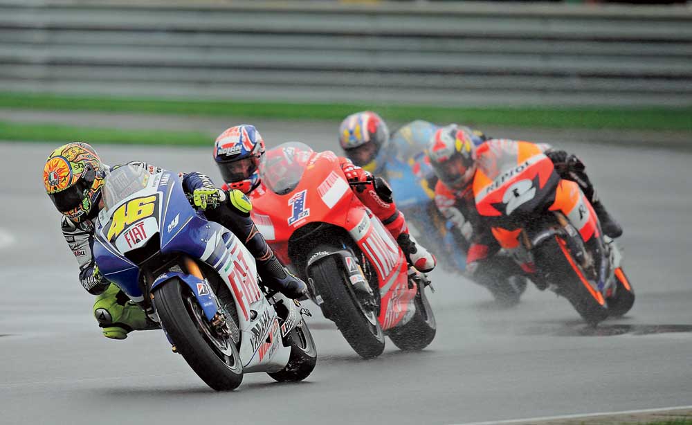 Главным действующим лицом на этапе в американском Индианаполисе стал шторм со шквальным ветром, вызванный надвигающимся ураганом «Айк». Поскольку во время гонки над трассой кружили рекламные баннеры и с креплений сорвало несколько блоков безопасности, маршалы решили прекратить гонку досрочно. В итоге победителем стал лидировавший за 7 кругов до финиша Валентино Росси, таким образом записавший в свой актив уже четвертую победу кряду. Теперь, чтобы завоевать свой восьмой чемпионский титул, итальянцу достаточно финишировать на следующем этапе в Мотеги четвертым. На подиуме рекордсмену (у Росси теперь 69 побед – больше чем у кого либо) составили компанию Ники Хайден и Хорхе Лоренцо.