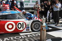Маршалы успевают убрать трассу и рестарт дается за одну минуту до финиша на один последний круг! И тут, если Прюетт находился в безопасности, так как непосредственно за ним шли несколько круговых, то весь последний круг Диксону пришлось отбивать настойчивые атаки опытного лемановского марафонца и прошлогоднего победителя Жоао Барбозы на №9. Тем не менее, и второй Скот в рядах Ганасси устоял, принеся после двух обидных вторых мест невероятный победный дубль для команды Чипа в этой американской легенде!