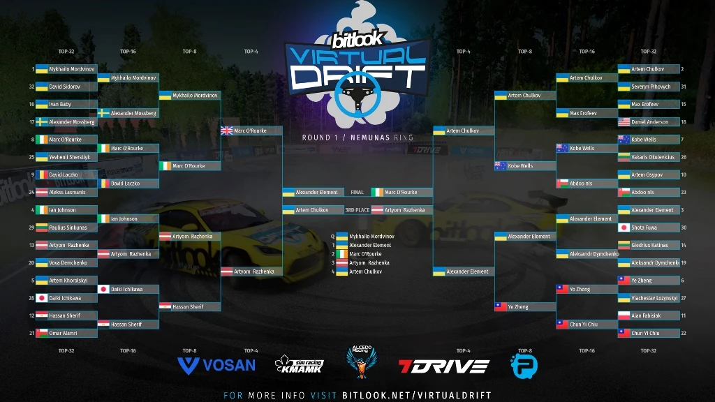 Минулої суботи, 6 січня, відбувся перший раунд всесвітньої серії Bitlook Virtual Drift. Гонка проходила на трасі Nemunas Ring в Литві. Це одна з найшвидших трас для дрифтингу, якщо не найшвидша, адже швидкість автомобілів при ініціації в занос сягає 174 км/год і далі по трасі майже не спадає.