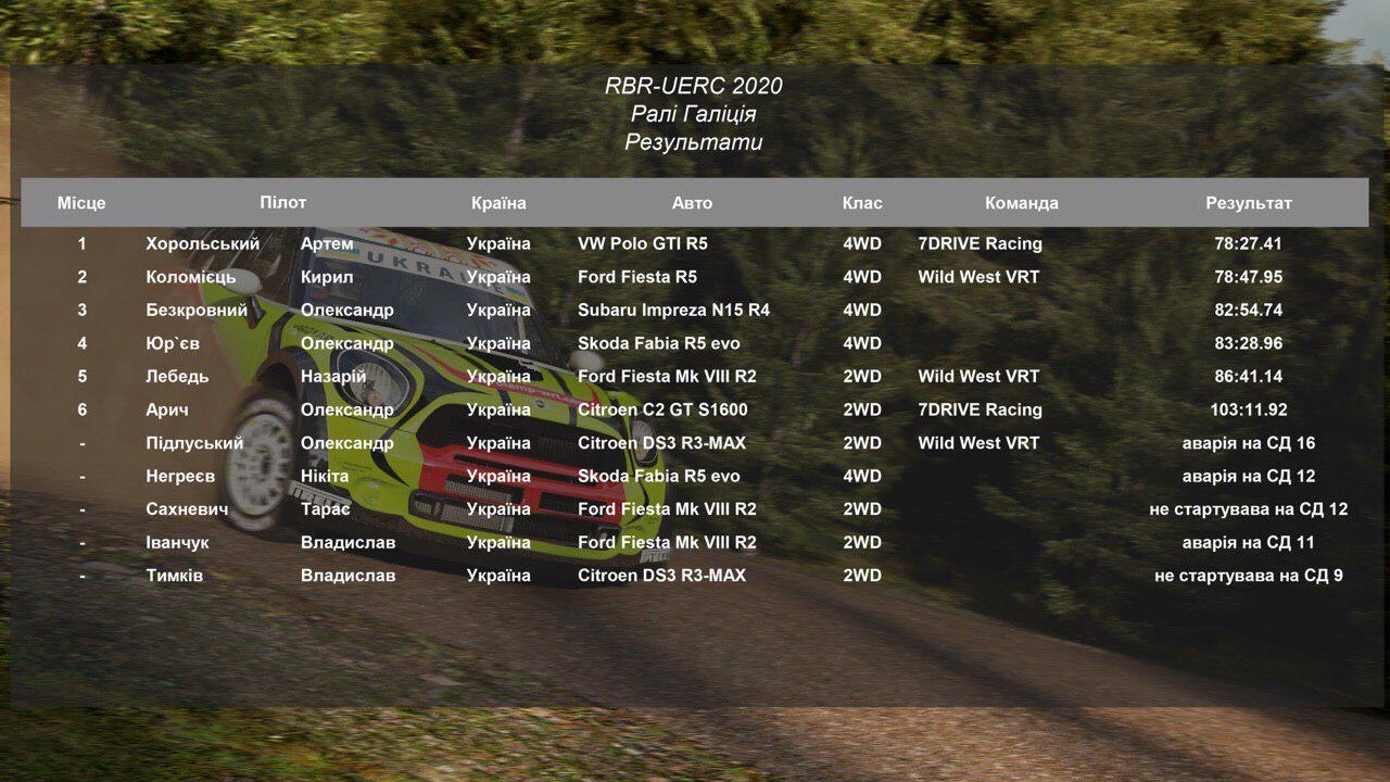 Но после просмотра видео-повторов было принято решение об аннулировании штрафов для всех пилотов, так Официальные окончательные результаты второго этапа Чемпионата Украины в виртуального ралли “Галиция” выглядят так:
