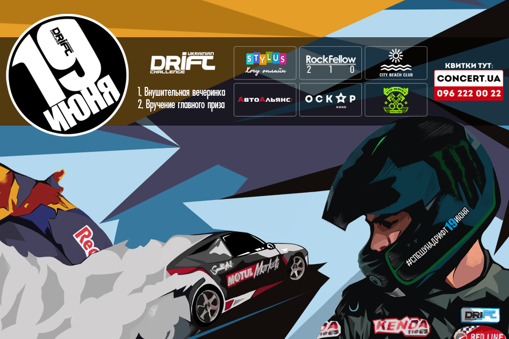 Этот день соберет всех неравнодушных к украинскому автоспорту в целом и любителей дрифт-шоу в частности. Дрифтинг, он же Дрифт – это точка сбора не только профессионалов этого вида спорта, и не только из Украины, а также и любителей и новичков, для которых наше шоу станет настоящим рывком, откровением и следующей ступенью. Однозначно самое ожидаемое событие в автоспорте соберет огромное количество зрителей, которые смогут узнать, что может настоящий пилот за штурвалом прокачанного дрифт-кара и увидеть по-настоящему качественное автошоу и профессиональный дрифт.