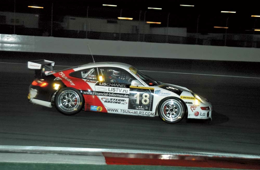 Как и год назад, украинская команда Tsunami RT начала сезон в январе, стартовав в пятом, юбилейном суточном марафоне Dunlop 24h Dubai. Однако если в 24-часовой гонке образца 2009 года одесситы до финиша не добрались, то на этот раз интернациональный экипаж в составе Александра Гайдая, Андрея Круглика, Арно Клязена и Михаэля Шратца всерьез рассчитывал побороться за призовое место не только в классе А6, но и в «абсолюте» гонки. Первая половина дистанции давала прекрасный повод для оптимизма: Porsche 997 GT3 Cup под номером 18 уверенно удерживал шестую позицию в «абсолюте», постепенно улучшая время прохождения круга. Однако единственная за всю гонку техническая проблема вынудила команду провести в боксах без малого час, что отбросило экипаж на 25-е место. Все, что успели сделать пилоты, – это вернуться в топ-десятку и финишировать восьмыми в «абсолюте» и шестыми в классе А6. Впрочем, и этот результат является рекордным для украинских спортсменов в суточных марафонах. Предыдущее достижение принадлежит Валерию Горбаню, который в экипаже с тремя россиянами финишировал 10-м на «24 часах Нюрбургринга» в 2008 году.