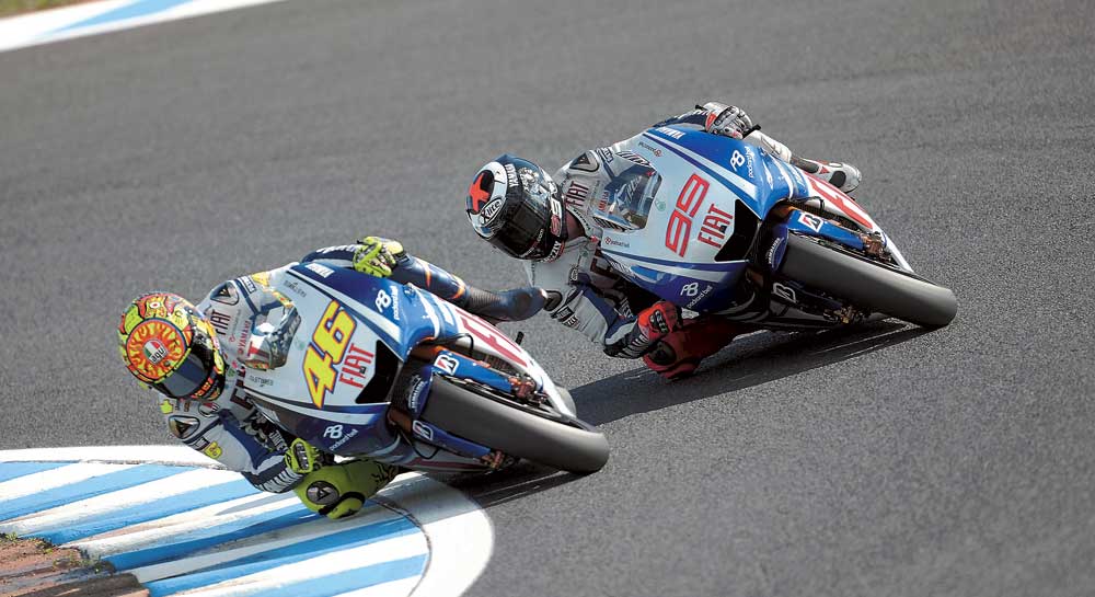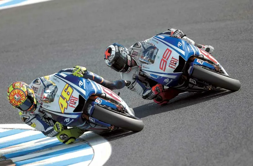 После победы на первом этапе австралиец Кейси Стоунер на Honda не сомневался в своем успехе и в испанском Хересе. Уверенности ему добавляли лучшее время в одной из практик и выигранный поул. Но его планам не суждено было осуществиться. Валентино Росси, который шел на второй позиции, попытался было обойти его довольно смелым маневром, скользнув внутрь поворота. Но уже почти пройдя оппонента, он потерял контакт с мокрым треком и выбил Кейси с трассы. И если Валентино продолжил гонку и добрался до финиша пятым, то раздосадованный Стоунер не захотел возвращаться в борьбу. «Это была полностью моя ошибка, я очень сожалею», – говорил Росси на финише гонки. После самоустранения двух претендентов на высшую ступень пьедестала с отрывом почти в 20 секунд лидировал действующий чемпион Хорхе Лоренцо, для которого победа на мокрой трассе стала первой в карьере.