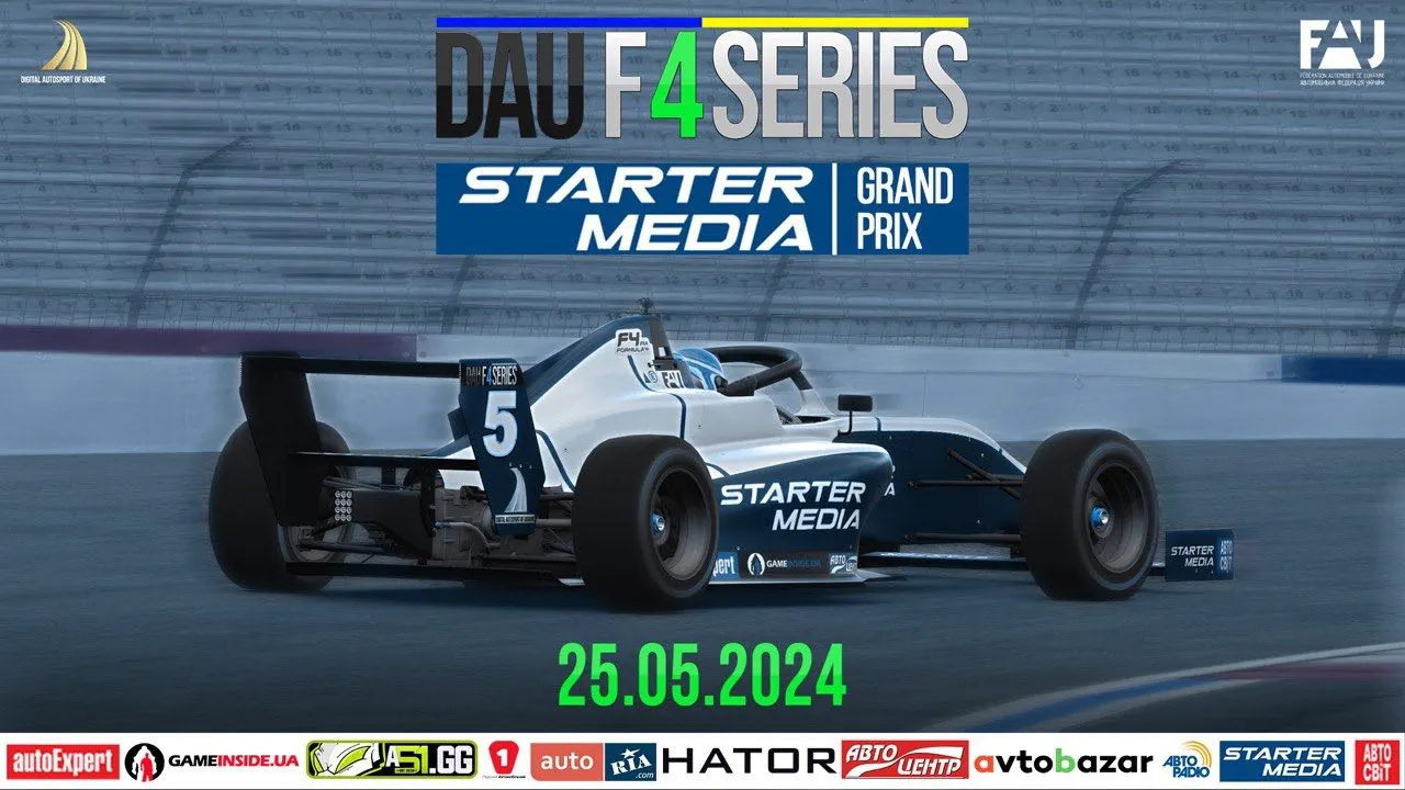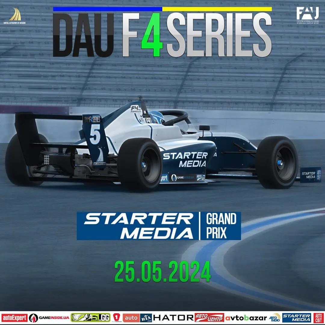 Запишіть у свої календарі: 25 травня 2024 року наша команда, Комісія Цифрового Автоспорту, проведе ДРУГИЙ етап StarterMedia Grand Prix Charlotte Міжнародної Серії змагань на Формулах-4 під назвою DIGITAL AUTOSPORT OF UKRAINE: F4 Series-2024. Season 2 (DAU F4 Series) на симуляторі iRacing.