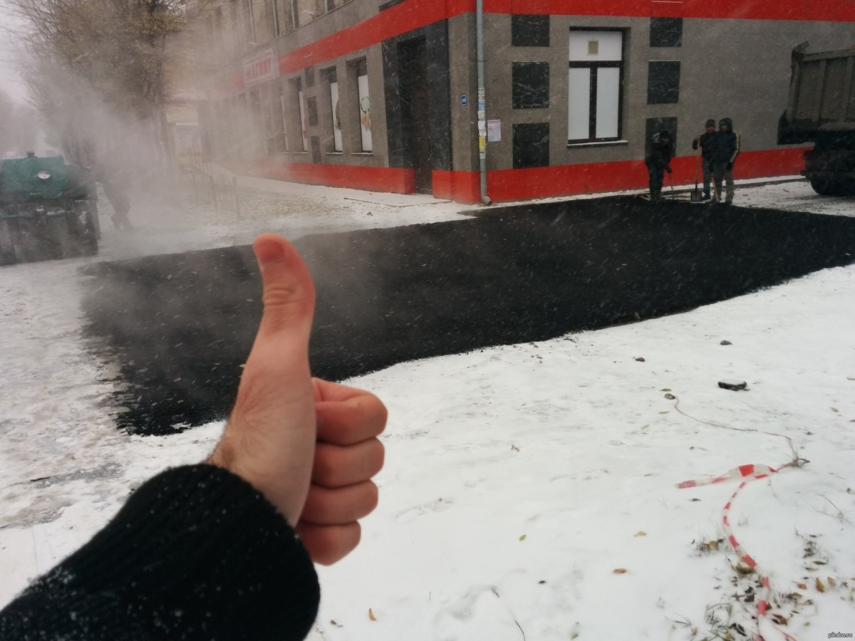 Как заставить дорожников не класть асфальт в снег (сарказм)