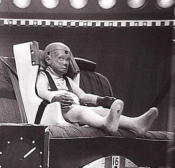 1977 год. На фоне растущего количества производителей автокресел для перевозки детей в автомобиле, появляется объективная потребность определять качество выпускаемой продукции. Поэтому, появляются организации со своими методиками, которые проводят тестирования автокресел, в том числе и ударные. Так в 1977 году выглядел один из первых, используемый для краш-тестов, манекен трехлетнего ребенка. Внутри него установлены датчики, которые во время удара определяли нагрузки, испытываемые в области головы, шеи, грудной клетки ребенка.