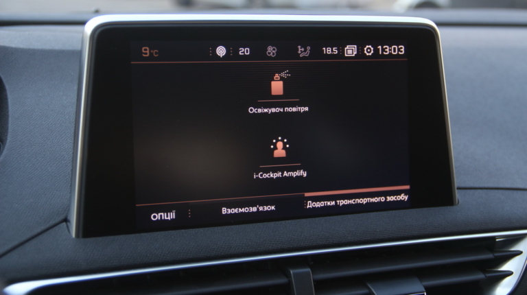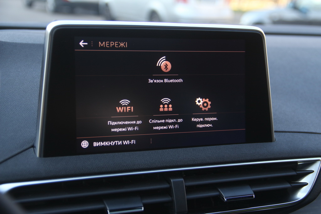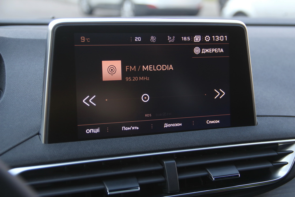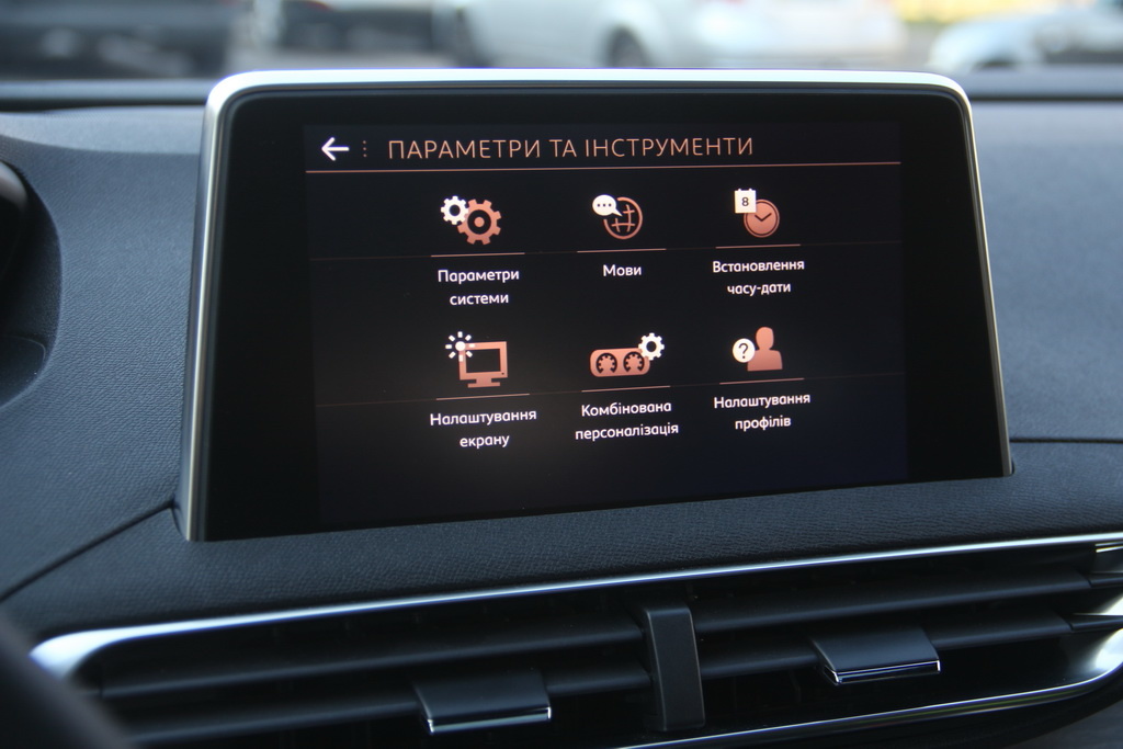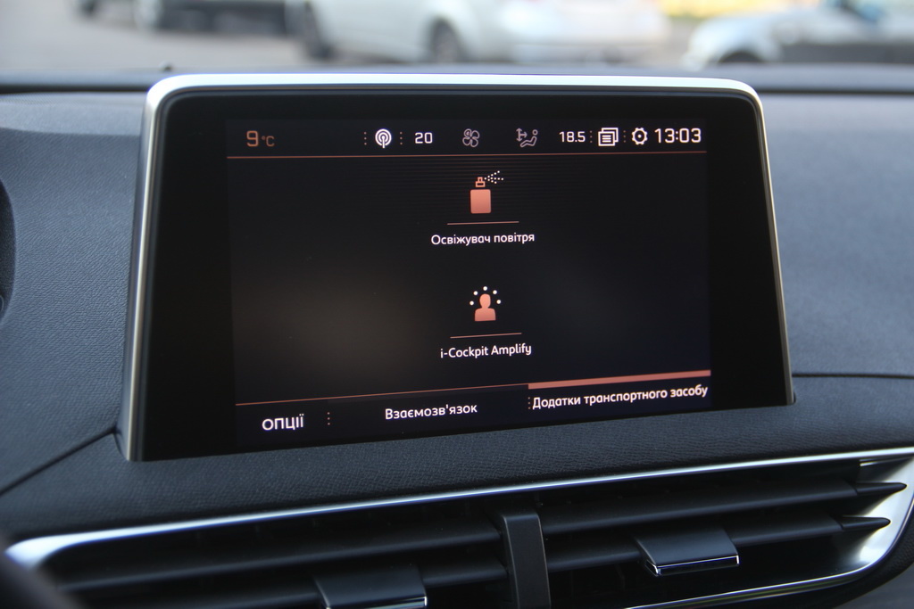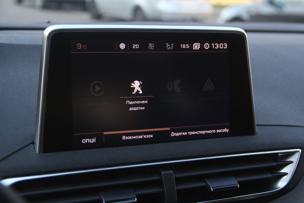 Интерьер, получивший название i-Сockpit, щеголяет и полностью цифровой приборной панелью. Все это живет одной-единственной эко-системой. На центральный монитор выводится вся нужная информация – техническая и вспомогательная от систем ассистанса. Основной 8-дюмовый сенсорный дисплей по моде последнего времени громоздится на передней панели, что часто выглядит не очень органично, но в случае с Peugeot, благодаря общей футуристичности дизайна, даже не раздражает.