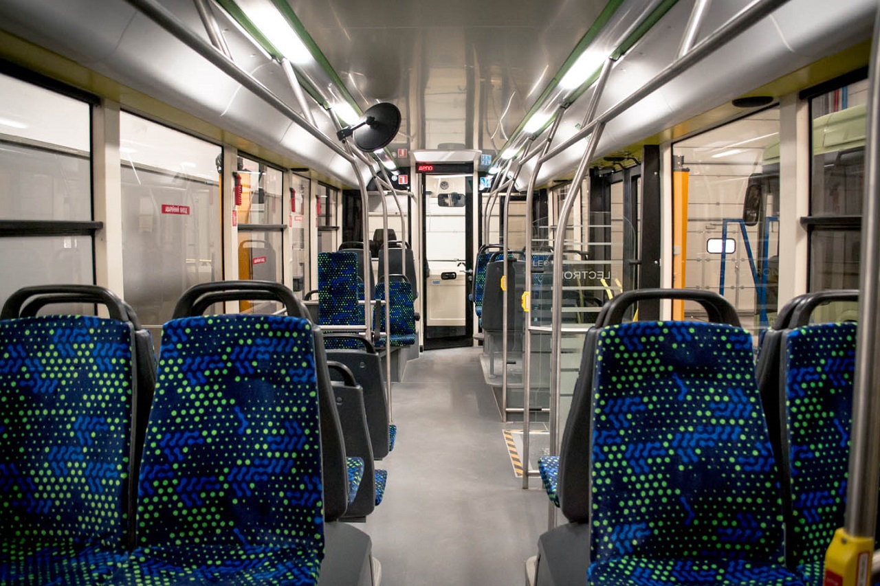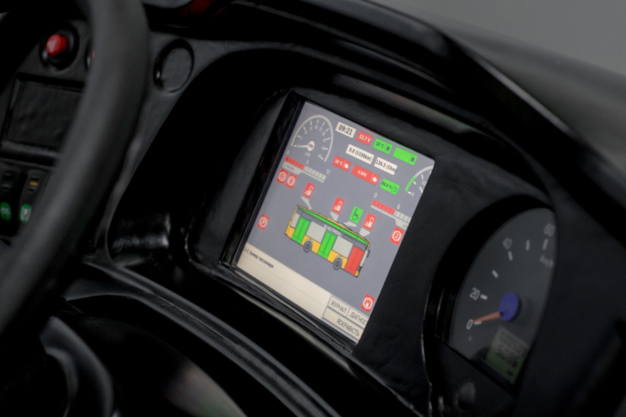Посадку-высадку облегчает система kneeling, которая опускает кузов на остановках, понижая уровень пола с 360 до 250 мм. В комплектацию входят кондиционер и бортовой компьютер с сенсорным экраном.