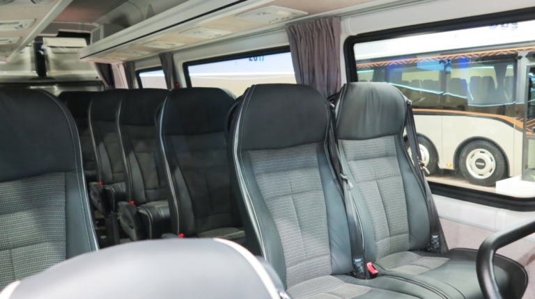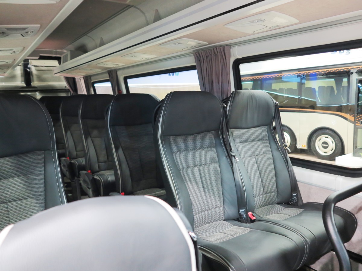 Салон имеет 19 комфортабельных кресел, покрытых натуральной кожей и замшей. Под потолком – емкие багажные полки и индивидуальные блоки вентиляции и освещения. К услугам пассажиров – климат-контроль и USB-разъемы. В корме автобуса имеет подъемная дверь, открывающая доступ к багажному отсеку.