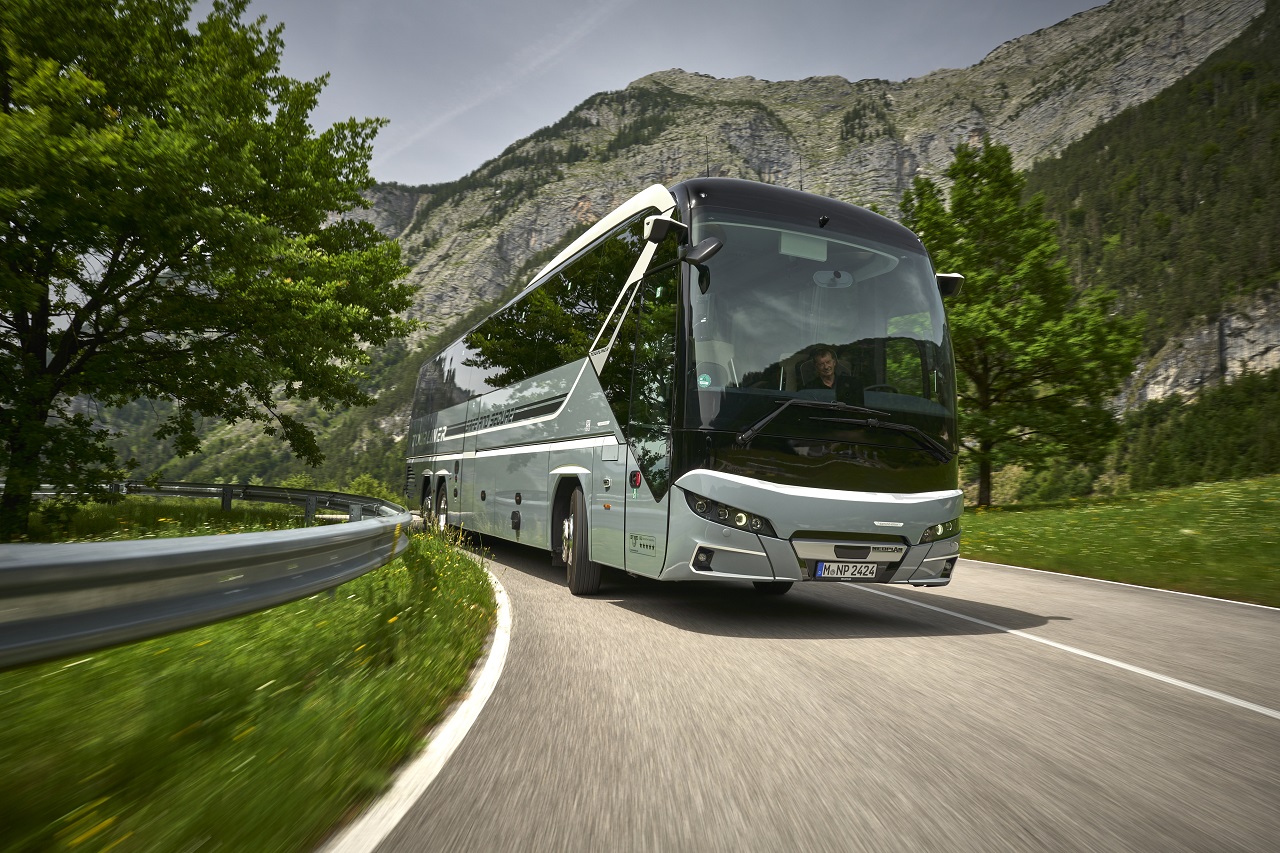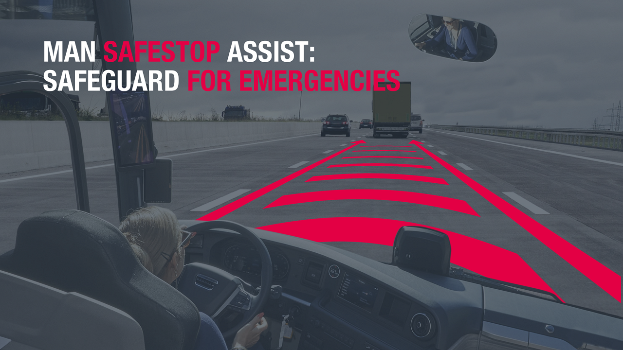 Компания MAN Truck & Bus впервые среди производителей предлагает для новых междугородных и туристических автобусов интеллектуальную систему экстренной остановки – MAN SafeStop Assist. Система следит за внимательностью водителя и, если по каким-то причинам, контроль над управлением машиной утерян, то сразу задействуется трехступенчатый режим оповещения.