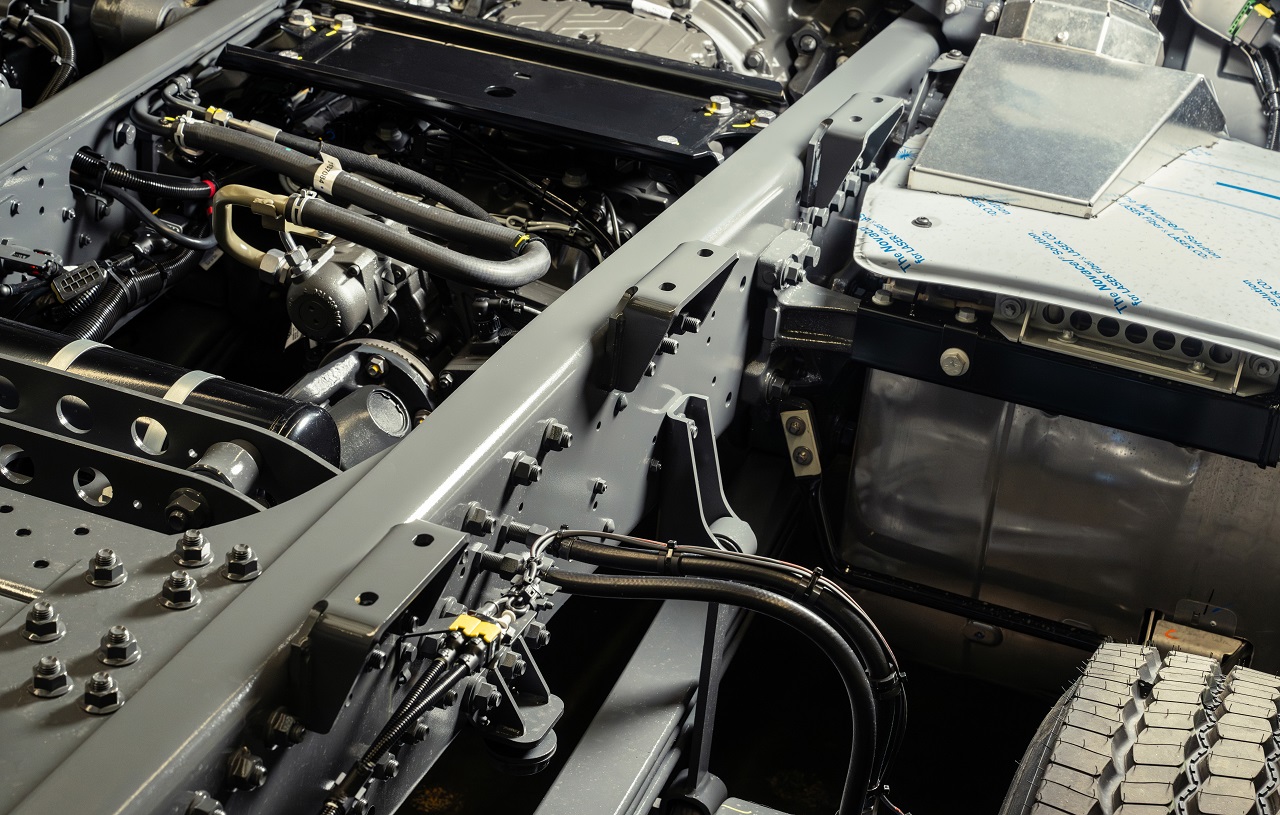 Большое внимание уделено снижению веса. Шасси DAF Trucks New Generation получили задний противоподкатный брус из алюминия, который на 28 кг легче и при этом еще и крепче стального. Более того, использование более жестких рамы и подрамника позволяет отказаться от дополнительного усиления шасси, что дает экономию до 135 кг. В итоге грузоподъемность автомобиля можно повысить на 160 кг.