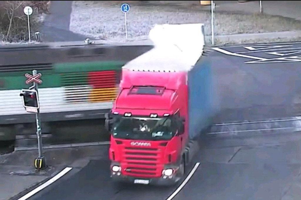 Принебрежение правилами пересечения на автомобиле железнодорожных переездов – одно из грубейших нарушений ПДД, которое зачастую влечет за собой самые тяжелые последствия. Транспортное средство можно заменить, а жизнь человеку дается лишь раз. Этот случай произошел в небольшом городке Фридек-Мистек на востоке Чехии. Водитель 16,5-метрового автопоезда почему-то решил, что его транспортное средство может с легкостью проскочить через переезд на запрещающий, красный сигнал светофора.