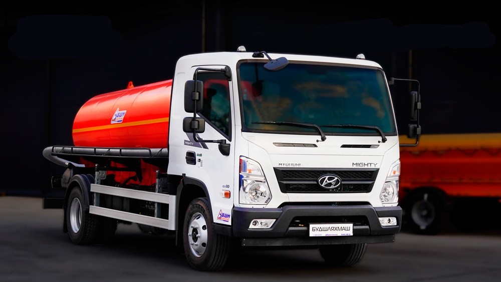 Среднетоннажники Hyundai EX10 Mighty продолжают комплектоваться различными кузовными надстройками, и что немаловажно отечественного производства. На днях предприятие «Будшляхмаш» изготовила на базе этой модели вакуумный, он же ассенизационный автомобиль – КО-503В-25.